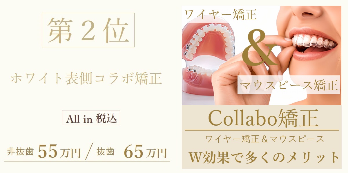 TBDC東京ビアンコ歯科・矯正歯科は新宿駅(西口)に近く【土曜・日曜】も診療で通院に便利な矯正歯科・総合歯科です。 新宿駅(西口)から徒歩5分。TBDC新宿院は通院に大変便利です。 全てのマウスピースの適合状態をAIが診断【通院は3ヶ月に1回】 TBDC新宿院のオススメ矯正 上下とも裏側なので完全に見えないステルス矯正治療です。 完全に見えない治療がいい、でもマウスピースが続かない方にオススメです。 1.マウスピースより完全に見えない2.マウスピースと違って、食事で外さなくていい3.マウスピースは断念しそう4.ワイヤー矯正なので、あらゆる歯並びに5.ワイヤー矯正なので、歯の動きが確実 TBDC新宿院の裏側矯正ならシミュレーションどおり確実に歯が動きます。 検査料・調整料・リテーナーも【All in 税込】の料金です。 医院への直接の分割払いです。裏側矯正の場合は初回45万円以上が必要になります。 TBDC新宿院のエステティック矯正 矯正歯科でEラインはもちろん、NLA(鼻唇角)を分析し、治療計画を提案するのはTBDC新宿院だけです。 カウンセリング【5分で】Eライン・NLA(鼻唇角)を分析し、矯正治療後の横顔を3Dリアル・シミュレーションが見られます。 【ご予約】 平日13:00~14:45は昼休憩のため電話対応はいたしておりません。 TBDC新宿院の人気の矯正治療Best4を解説していきます。 上は見えない裏側矯正、下は目立たないホワイト表側矯正です。 上下ともの裏側矯正よりも快適でリーズナブルです。 マウスピースは自信がない方にオススメの目立たない矯正治療です。 上の裏側矯正はデジタル・オーダーメイドで、治療結果に優れています。 TBDC新宿院の裏側矯正ならシミュレーションどおり確実に歯が動きます。 検査料・調整料・リテーナーも【All in 税込】の料金です。 医院への直接の分割払いです。ハーフリンガル矯正の場合は初回40万円以上が必要になります。 コラボ矯正は、ワイヤー矯正とマウスピース矯正を組み合わせた矯正治療です。 ワイヤー矯正とマウスピース矯正を組み合わることで、あらゆる症例に対応できます。 このような症例ではマウスピースだけでは不可能ですが、ワイヤー矯正を組み合わせることで治療可能です。 コラボ矯正は、ワイヤー矯正とマウスピース矯正のそれぞれの得意な歯の動きを組み合わせるので大変効率がいい矯正治療です。 デジタル・マウスピース矯正は理想の歯並びをシミュレーションできるので、仕上がりも簡単です。 小臼歯の抜歯矯正は、ワイヤー矯正では2年以上かかります。 コラボ矯正ならワイヤー矯正の単独治療よりも短期間で治療を終了することも可能です。 コラボ矯正【料金】 コラボ矯正は院内分割も同一料金になっております。 検査料・調整料・リテーナーも【All in 税込】の料金です。 ハーフリンガル・コラボ矯正 上は裏側・下は表側のハーフリンガル・コラボ矯正もございます。 ハーフリンガル・コラボ矯正では、上の裏側矯正ブラケットに世界最小サイズで快適なクリッピーLを使用しております。 ワイヤ矯正とマウスピース矯正の人気のコラボ矯正は、院内分割でも一括支払いまたはDentalクレジット払いと同一料金なのでオススメです。院内分割は無金利となります。 インビザラインは世界1600万人以上が利用している人気のマウスピース矯正です。 全てのマウスピースの適合状態をAIが診断【通院は3ヶ月に1回】 インビザラインならマウスピースでこのような重度の八重歯も治療が可能です。 インビザラインは公式にマウスピースで抜歯矯正にも対応しています。 コチラの症例のインビザライン【シミュレーション】 インビザラインは実際にマウスピースでの治療開始前に、このようにシミュレーション動画で治療予測結果を確認できます。 コチラの動画の症例ではマウスピースが38個でした。 マウスピースだけの抜歯矯正でも、このようにキレイに治すことが可能です。 マウスピースで抜歯矯正も対応なので、Eライン・横顔矯正も可能です。 TBDC新宿院なら、インビザラインにワイヤー矯正を組み合わせて(インビザライン・コラボ矯正)あらゆる症例に対応できます。 TBDC新宿院の理事長は2014年からインビザラインを取扱い、5年連続でダイアモンド・プロバイダーに認定されております。 ・1日20時間装着・患者様ご自身で10日交換・ケアのための通院は2ヶ月に1回【通常診療の場合】 インビザラインなどのマウスピースは1日20時間以上の使用が必要です。 あなたがマウスピース矯正を続けられるか?MPTIマウスピース適正診断がオススメです。 Q1aaa 毎晩寝る前に必ず歯を磨く はい いいえ AIが全てのマウスピースで適合状態を分析し、次のマウスピースに進めるか?判定いたします。 マウスピースの適合状態が悪いのに、無理に次のマウスピースに進むのを防ぎ、マウスピースによる矯正治療を確実にします。 マウスピースの使用で順調にに動いているか?家にいながら全てのマウスピースで診断できるので、モチベーションが長続きし
