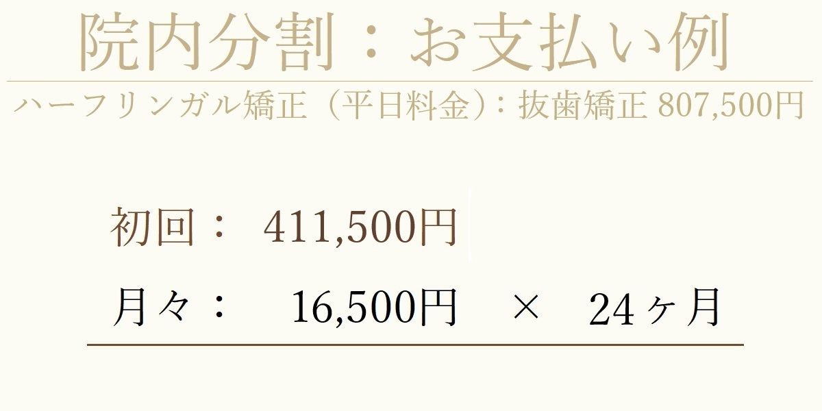ハーフリンガル矯正 クーポンのご利用は新規の患者様が対象になります。 ハーフリンガル矯正とは? ハーフリンガル矯正は、上は見えない裏側矯正、下は目立たないホワイト表側矯正になっています。 マウスピース矯正は自信がない、続かなかった方にオススメの目立たない矯正治療です。 検査料・調整料・リテーナーも【All in 税込】の料金です。 TBDC新宿院では、上の裏側矯正にデジタル・オーダーメイドで信頼性が高いHARMONY(ハーモニー)を採用しております。 TBDC新宿院の裏側矯正ならシミュレーションどおり確実に歯が動きます。 HARMONY(ハーモニー)裏側矯正では、スキャンデータから理想の歯列をデジタル上シミュレーションしたセットアップ・データを作り、このデータを基にブラケットやワイヤーがオーダーメイドされます。 上の画像では(シミュレーション)セットアップ・データどおりに治療されています。 下の歯は唇でほとんど隠れるので、あまり見えません。下の歯に目立たないホワイトの表側矯正なら、他人からほとんどわかりません。 ハーフリンガル矯正の正面からのイメージはこのようになります。 【実際のイメージ】 ハーフリンガル矯正とは?【意味】 ハーフリンガル矯正のLingual(リンガル)は英語で舌側=歯の裏側の意味です。 上下歯列の上だけの半分=Halfが裏側矯正なので、ハーフリンガル矯正といいます。 ハーフリンガル矯正【特徴】 【マウスピース矯正との比較】 ハーフリンガル矯正は、マウスピース矯正と比較して様々なメリットがございます。 ハーフリンガル矯正は、マウスピース矯正を途中で離脱した方のリベンジにオススメの目立たない矯正治療です。 マウスピースは食事の時には外す必要がございます。 しかし、ハーフリンガル矯正は食事の時でも外す必要はございません。 マウスピース矯正が続くかは自分次第です。【マウスピース矯正の使用法】・1日20時間以上を装着・10日でマウスピースを交換マウスピース矯正は自己管理ができず、途中で離脱する方がいます。 しかし、ハーフリンガル矯正は自己管理の必要がなく治療を続けられます。 ハーフリンガル矯正はワイヤー矯正です。 マウスピース矯正では困難な症例でも、あらゆる歯並びに適応できます。 ハーフリンガル矯正はワイヤー矯正です。 マウスピース矯正では、患者様のマウスピースの使用状況が悪いと歯の動きが不十分になります。 ハーフリンガル矯正なら、歯が確実に動きます。 ハーフリンガル矯正で使用する【デジタル裏側矯正】 TBDC新宿院ではハーフリンガル矯正の裏側矯正に、最新のデジタル裏側矯正・HAMONY(ハーモニー)を使用しています。 歯の動きに優れているので、このような複雑な歯並びも裏側矯正で治療可能です。 HAMONY(ハーモニー)はブラケットもワイヤーもデジタルで精密にオーダーメイドします。 デジタルでロボット製造されるので、誤差が少なく簡単に良好な治療結果が得られます。 クリップ式のブラケットは歯の動きがスムーズで、痛みが少ないというメリットがございます。 またワイヤーを確実にコントロールできるので良好な治療結果に繋がります。 クリップ式のブラケットで裏側矯正でキレイに治療できます。 メタル一体型のブラケットは破損や脱離といったトラブルが少なく、治療の進行がスムーズです。治療期間の短縮につながります。 HARMONY裏側矯正は、オーダーセンターが東京にあり、ネットまたは電話で担当技工士に日本語でキメ細かく患者様の希望を指示することができます。 【上下とも裏側矯正との比較】 ハーフリンガル矯正は、上下ともの裏側矯正と比較して様々なメリットがございます。 ハーフリンガル矯正は、上下とも裏側矯正と比較して快適というメリットがございます。 下の裏側矯正は、舌に矯正装置が常に当たります。 上下とも裏側矯正の場合は、違和感が強いというデメリットがございます。 ハーフリンガル矯正は上下とも裏側矯正と比較して料金が安く済むというメリットがございます。 検査料・調整料・リテーナーも含まれた税込の料金です。 抜歯矯正の場合は、小臼歯抜歯の費用も含まれています。 一括支払い(現金・カード)またはDentalローンご利用の場合の料金になります。 検査料・調整料・リテーナーも【All in 税込】の料金です。 非抜歯 700,000円(税込)抜歯矯正 800,000円(税込) ※ワイヤー交換などの通院時の調整料も含まれています。※抜歯矯正では、小臼歯の抜歯費用も含まれています。 医院への直接の分割払いです。ハーフリンガル矯正の場合は初回40万円以上が必要になります。 非抜歯 750,000円(税込)抜歯矯正 850,000円(税込) 非抜歯 712,500円(税込)抜歯矯正 807,500円(税込) 非抜歯 742,500円(税込)抜歯矯正 891,000円(税込) クーポンのご利用は新規の患者様が対象になります。 TBDC東京ビアンコ歯科・矯正歯科【新宿院】 ハーフリンガル矯正以外のTBDC新宿院の矯正治療は【当院TOPページ】からご覧ください。 【歯科医師】 【アクセスMAP】 